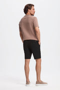 Shorts tailored in a slim fit with an 8 inch inseam, crafted from a twill-structured, top-dyed fabric for enhanced durability and 4-way stretch. Designed with front pintucks and side waistband elastication for a refined yet flexible fit. Details include clean side entry pockets, belt loops, buttoned back welt pockets and metal flag logo at the back.
